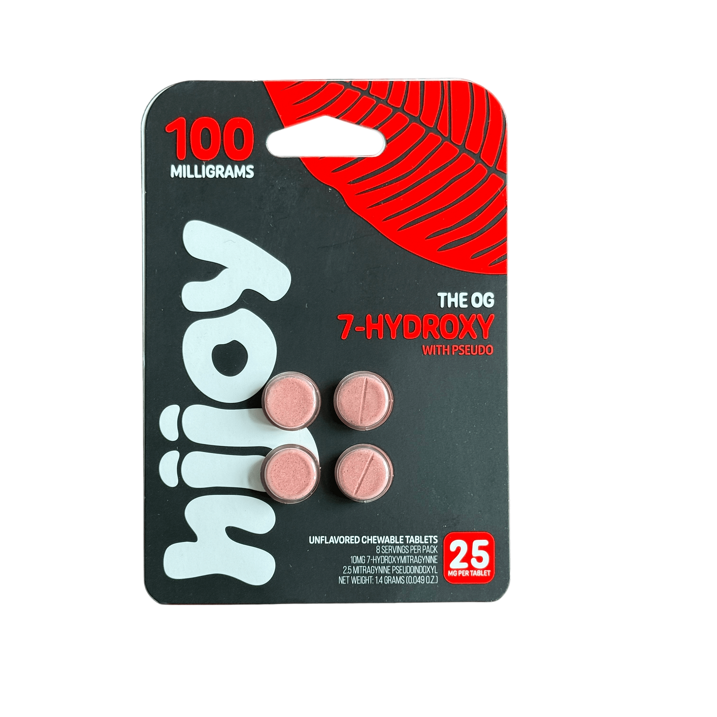 HiJoy OG tablets contained 17.09mg of combined 7-hydroxy and pseudo, which was about 32% weaker than its 25mg claim.