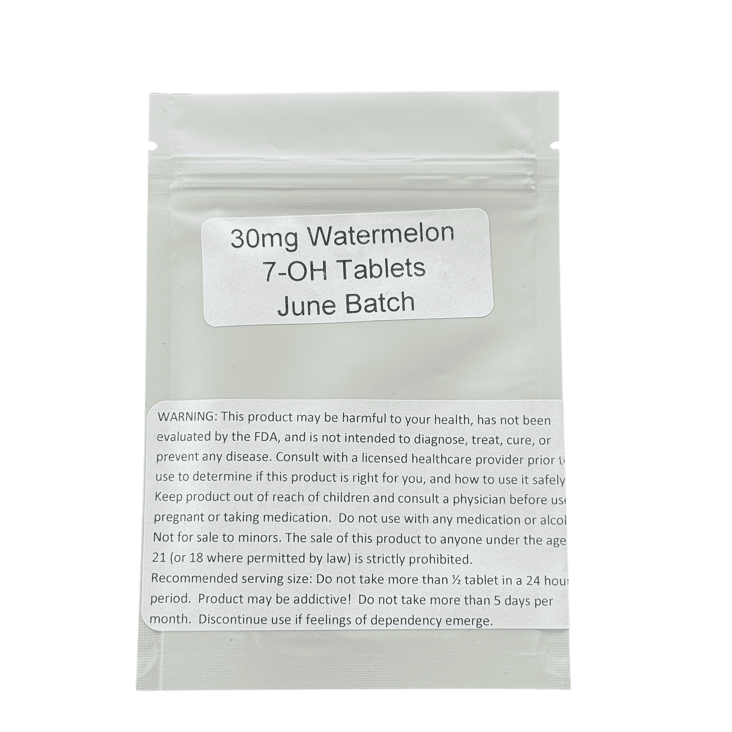 KD 30mg Watermelon tablets contained 25.35mg of 7-hydroxy, which was about 16% weaker than its 30mg claim.