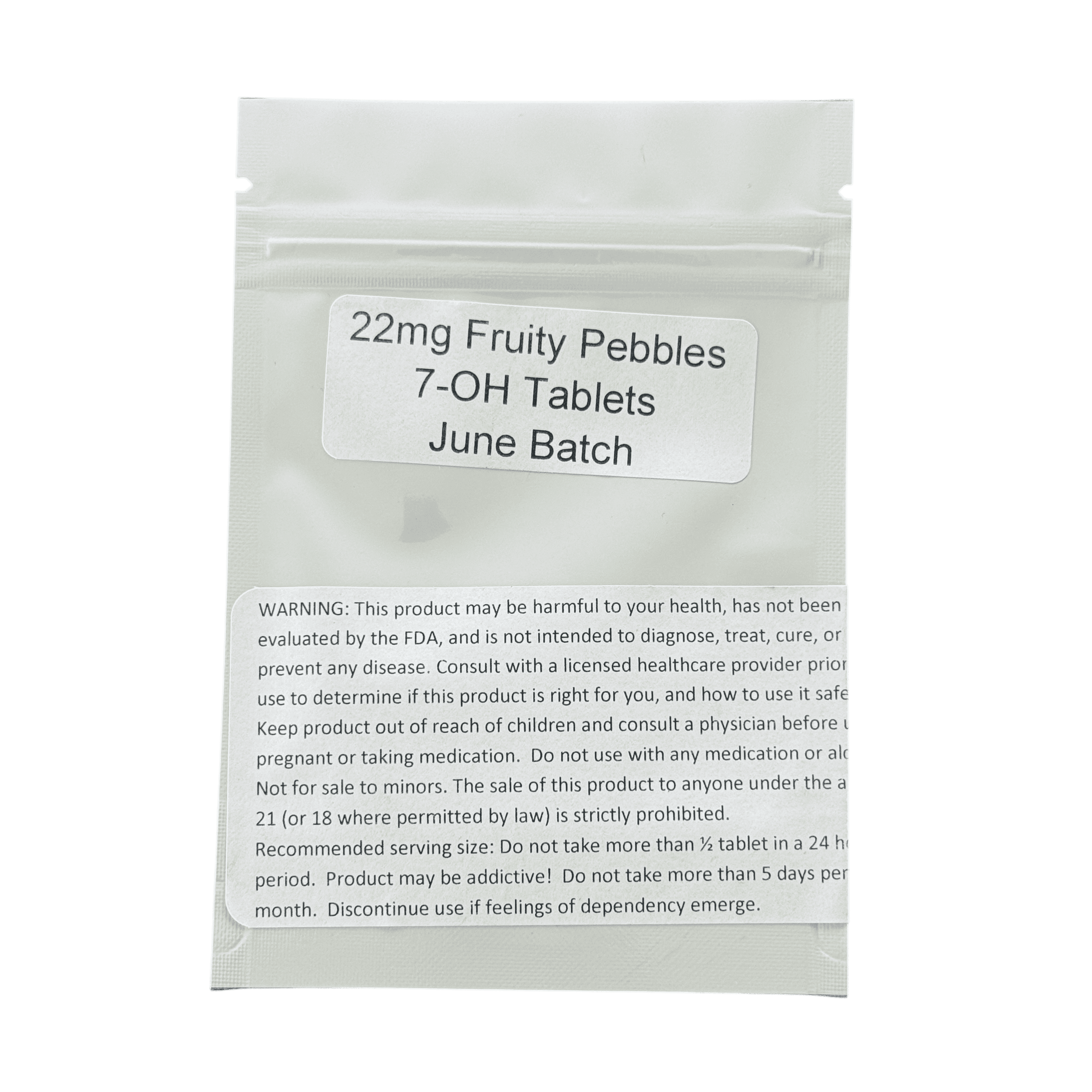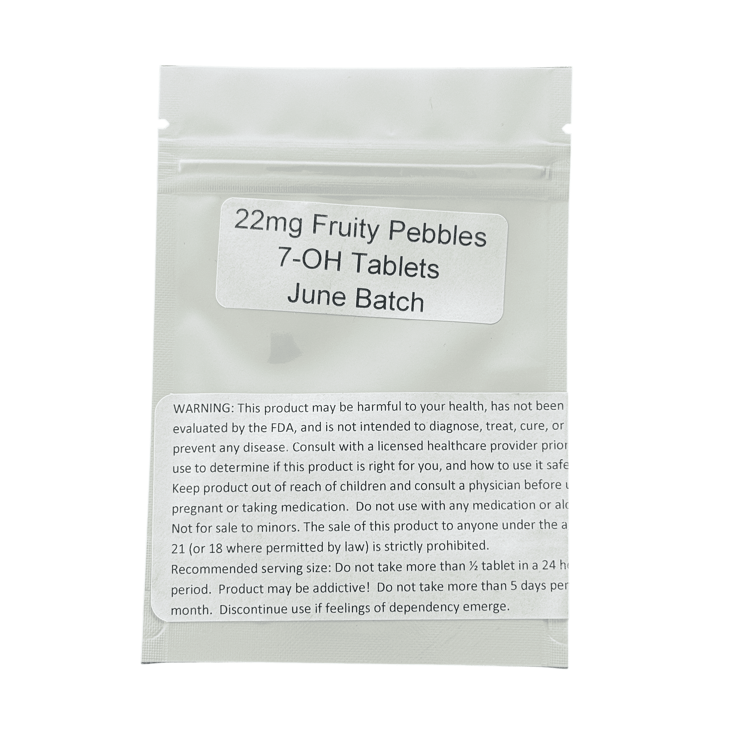 KD 22mg Fruity Pebbles tablets contained 18.67mg of 7-hydroxy, which was about 15% weaker than its 22mg claim.