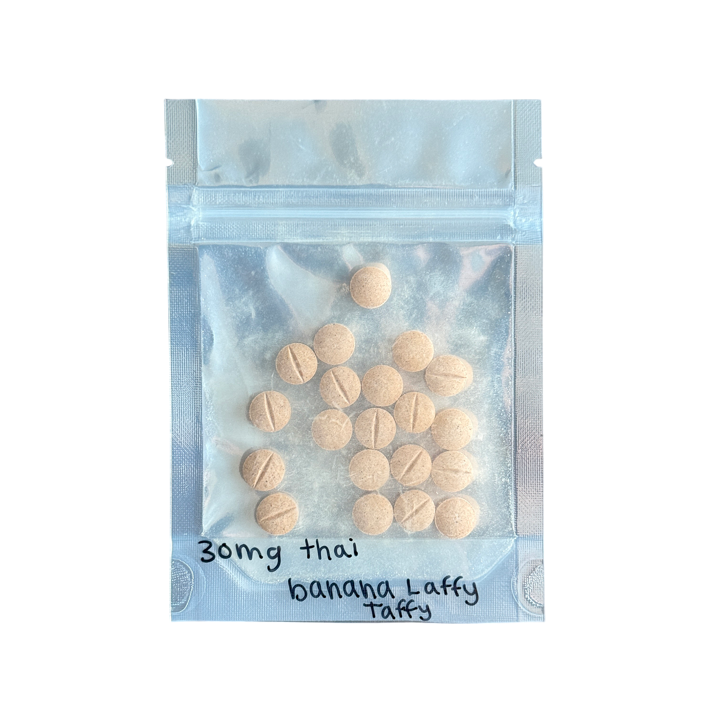 KH Banana Laffy Taffy Thai tablets backed up their 7-OH claim. Each tablet contained 32.11mg of 7-OH, which was slightly stronger than its 30mg claim.