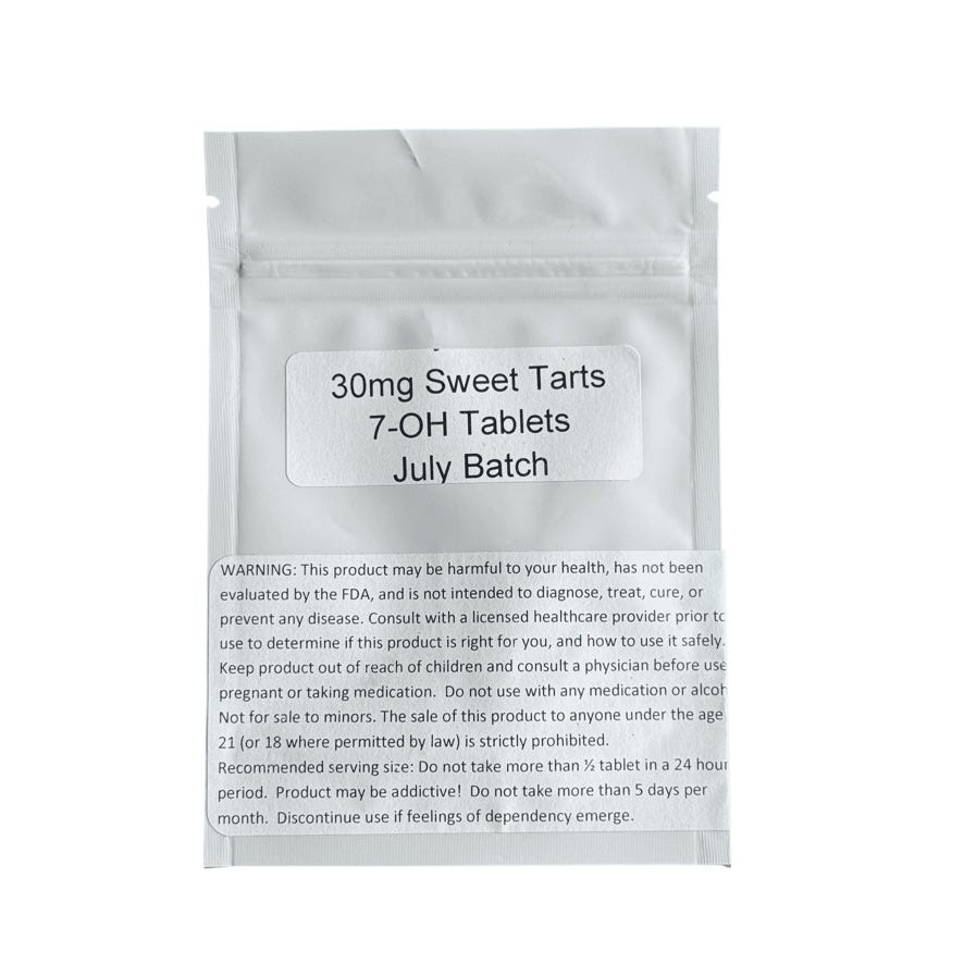 KD Sweet Tart tablets contained 24.98mg of 7-hydroxy, which was about 17% weaker than its 30mg claim.