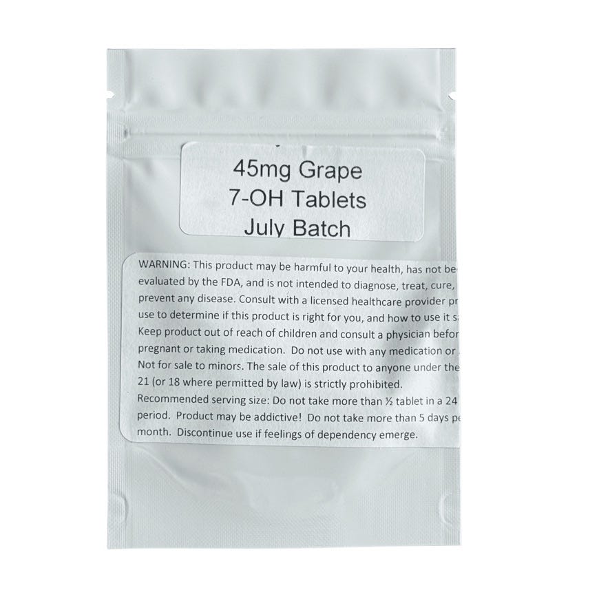 KD Grape tablets contained 38.38mg of 7-hydroxy, which was about 15% weaker than its 45mg claim.