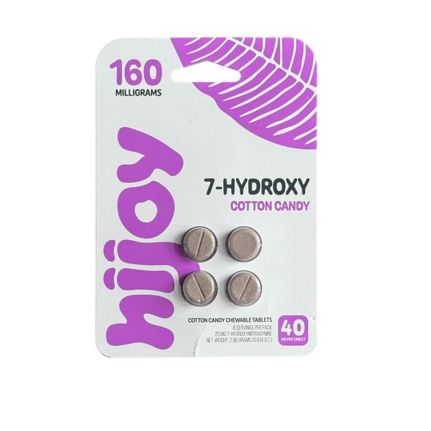 HiJoy Extra Strength Cotton Candy tablets contained 22.18mg of 7-hydroxy, which was about 45% weaker than its 40mg claim.