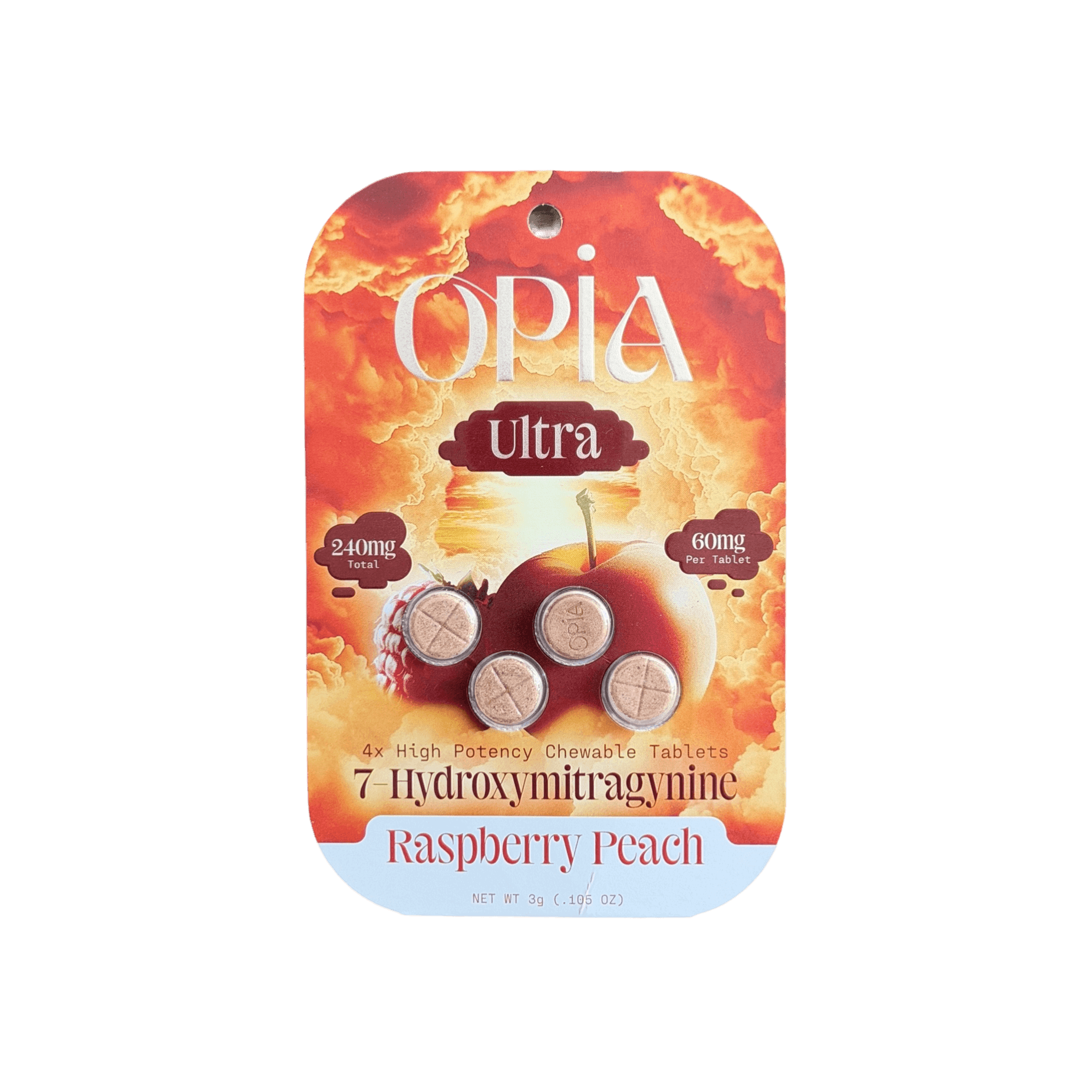 Opia 60mg Raspberry Peach tablets contained 42.54mg of 7-hydroxy, which was about 29% weaker than its 60mg claim.