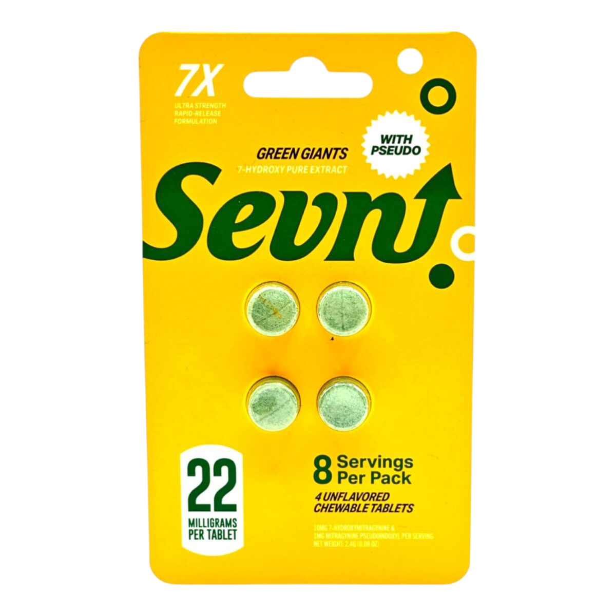 Sevn Green Giant tablets contained 15.84mg of combined 7-hydroxy and pseudo, which was about 28% weaker than its 22mg claim.