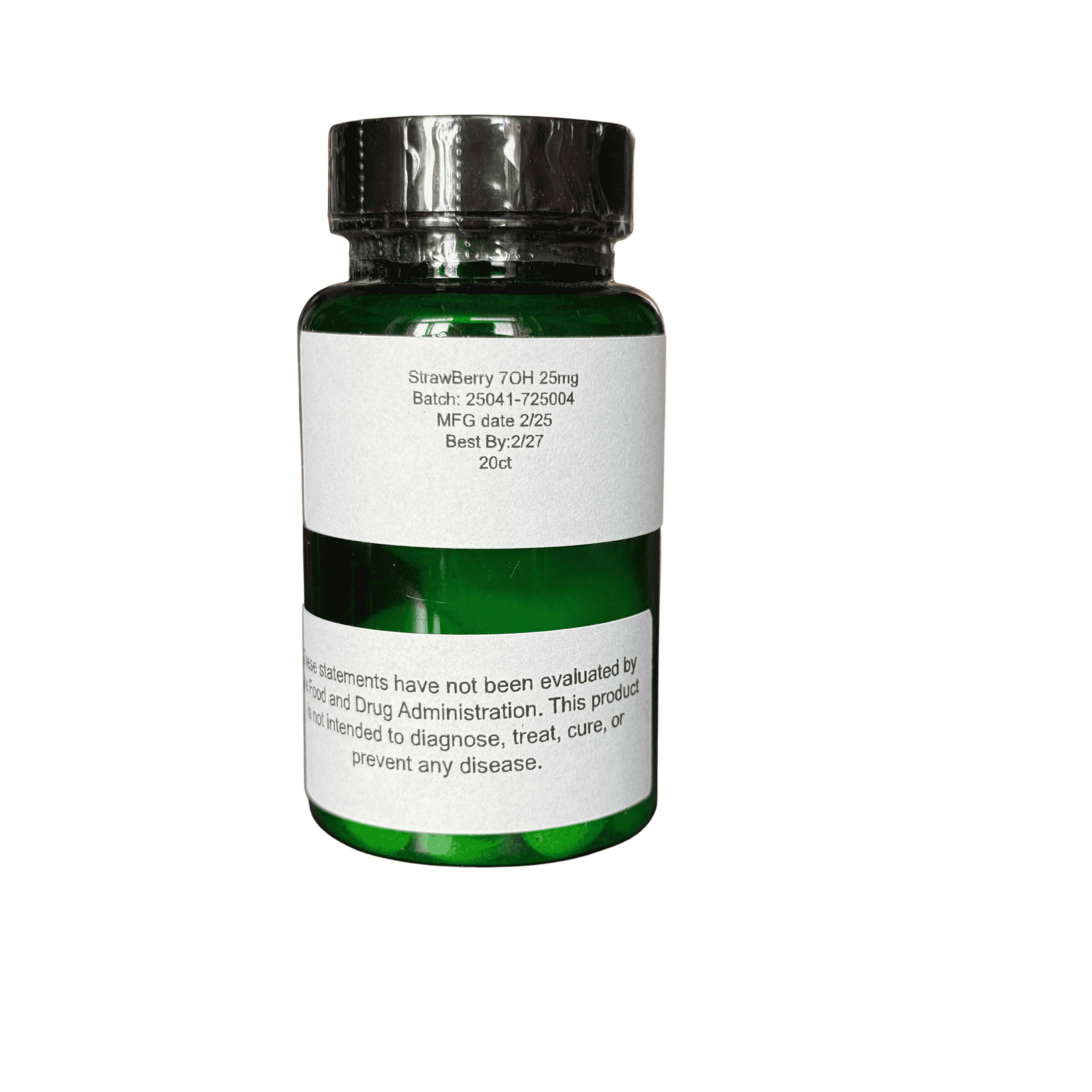 Bulk Kratom 25mg Strawberry 7-OH tablets contained 19.50mg of 7-hydroxy, which was 22% weaker than its 25mg claim.