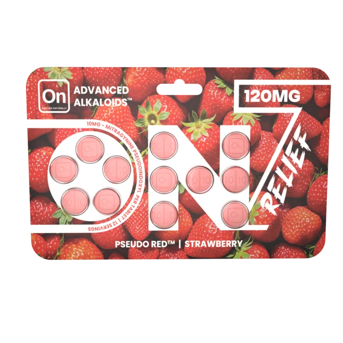 On7 Strawberry Red Relief tablets contained 1.33mg of pseudo, which was about 87% weaker than its 10mg claim. It also contained 7.07mg of unadvertised 7-OH. We would be willing to give this product a passing grade if it were transparent with its contents.