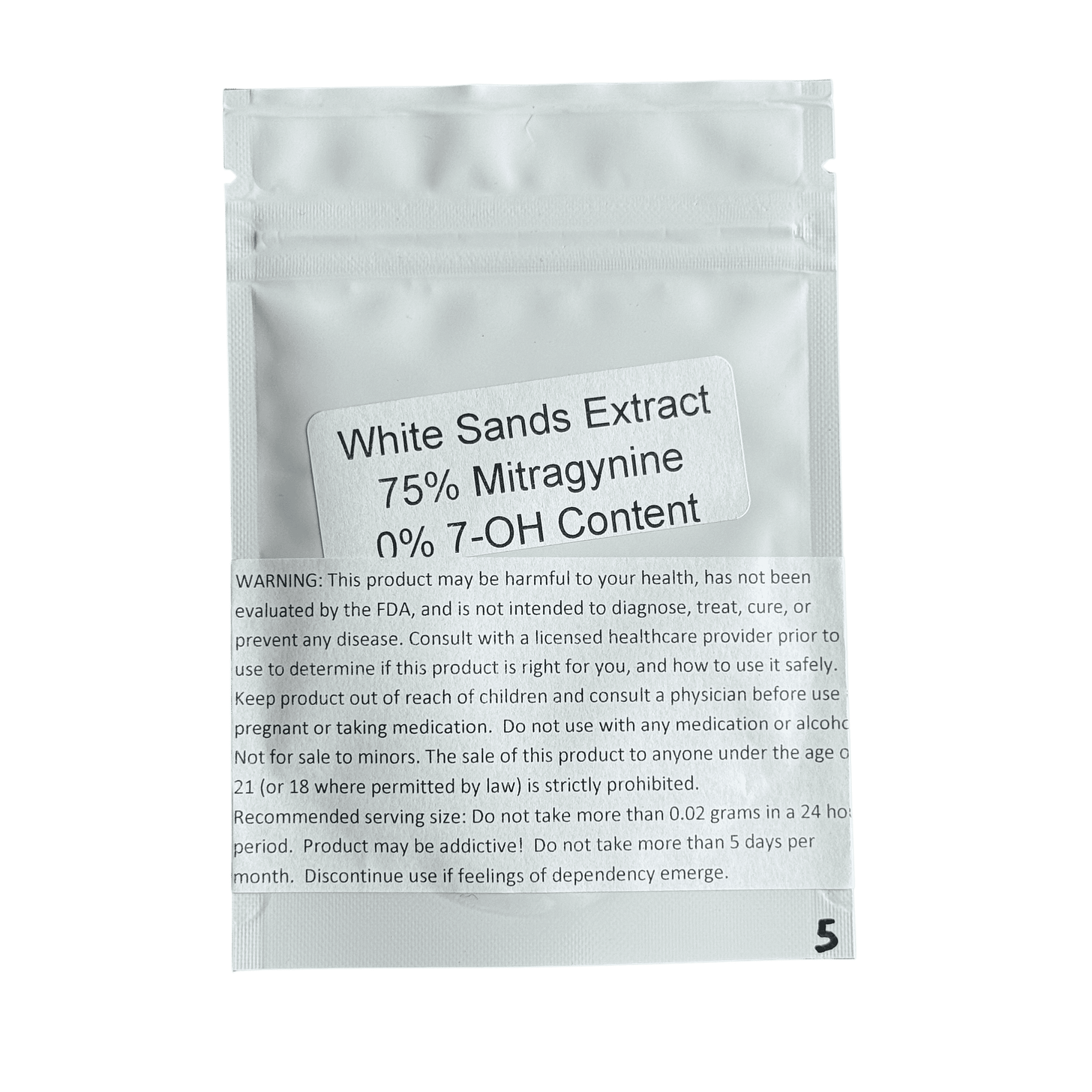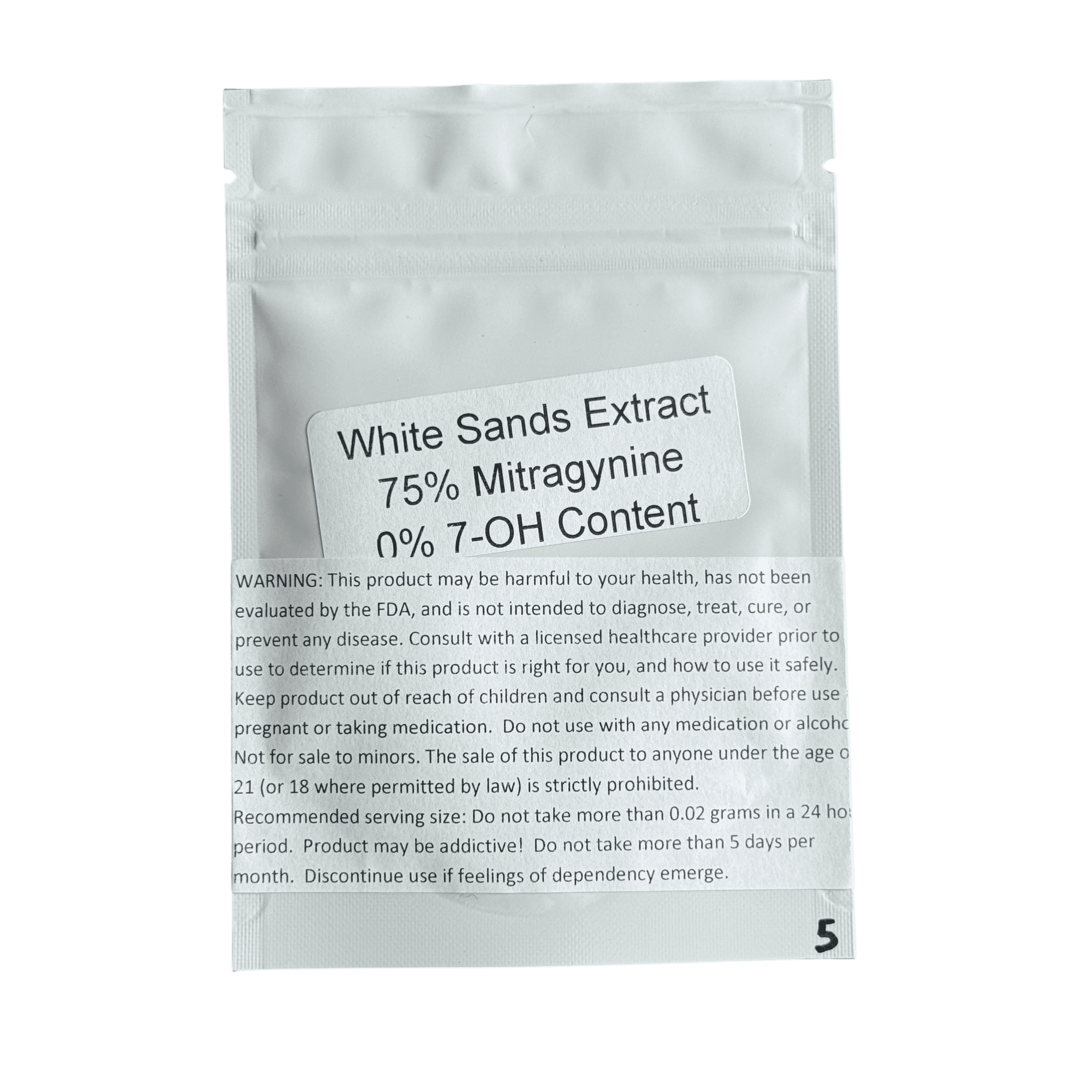 KD White Sands 75% MIT powder nearly backed up its mitragynine claim. The powder contained 69.16% of mitragynine, which was 8% weaker than its 75% claim.